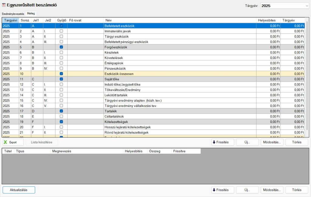 Mérleg és eredménylevezetés modul